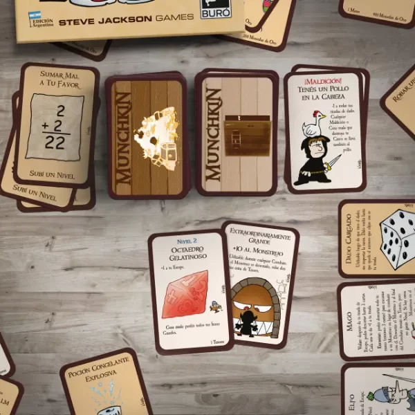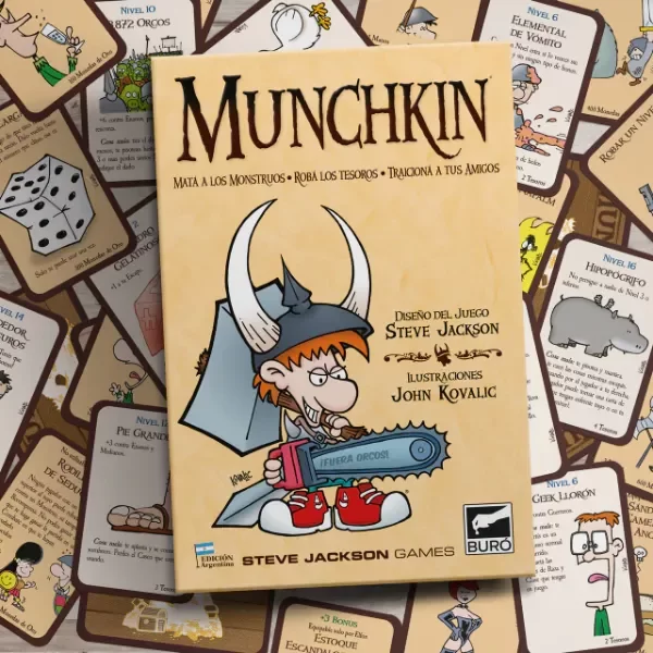 El juego de mesa Munchkin de Steve Jackson te invita a sumergirte en una aventura de fantasía donde podrás derrotar monstruos, arrebatar tesoros y traicionar a tus amigos. Este juego es una experiencia lúdica que combina estrategia, humor y la posibilidad de mejorar a tu personaje con distintas armas y hechizos. Ideal para compartir con amigos y familia, Munchkin es una opción para quienes disfrutan de los juegos de rol y buscan una dinámica de juego ágil y divertida.