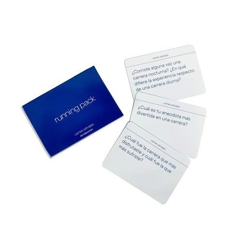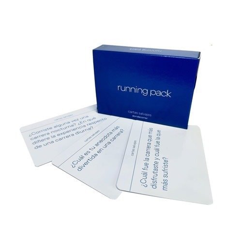 RUNNING PACK es un mazo de 50 cartas con preguntas interactivas, diseñado para que te conozcas mejor a vos mism@ y a otr@s. Cada pregunta se convierte en una oportunidad para aprender, compartir experiencias y potenciar tu rendimiento, tanto en el entrenamiento como en la carrera. En sus marcas, listos, ¡ya!