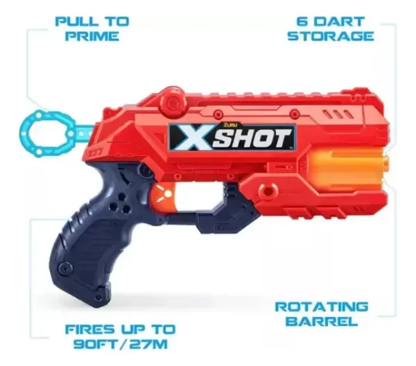 Pistola lanza dardos X-SHOT Revolver TK-6 Reflex 6: te permite lanzar 6 dardos en rápida sucesión gracias a su cañón giratorio.