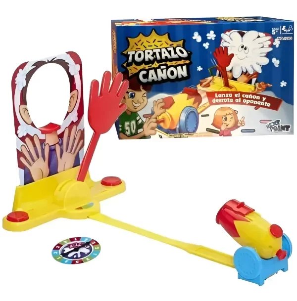 Tortazo Cañón es un emocionante juego de azar que promete horas de diversión para la familia y amigos. Con un diseño que incluye un cañón lanzador, una mano de goma, un tablero con cara recortada y una ruleta de colores, este juego clásico es perfecto para quienes buscan entretenimiento ligero y dinámico.