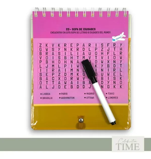 El cuaderno “Juego y Aprendo” es una propuesta didáctica y reutilizable que acompaña el desarrollo de los niños en edad escolar, con actividades pensadas para estimular la lógica, la concentración, el vocabulario y la creatividad.