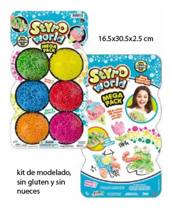 Kit de modelado de espuma de poliestireno con 6 styro blandos de diferentes colores: Verde, azul, naranja, amarillo, rojo y morado. Suave y crujiente. Además no ensucia. Son juguetes para aliviar el estrés y manualidades. Styro World es el compuesto de aprendizaje perfecto para aulas y en el hogar donde los niños pequeños y preescolares pueden cavar, descubrir y desarrollar habilidades motoras finas. Playfoam no es tóxico, sin gluten y sin nueces. Tu imaginación es el límite. Al aire con el envase abierto no se seca.