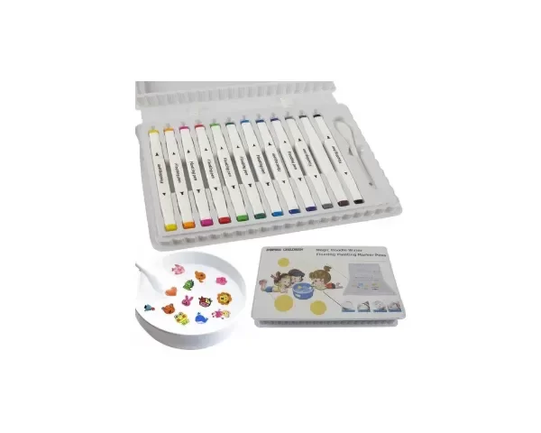 Dibuja sobre la cuchara y luego sumerge dentro del maletín con agua! Tus creaciones quedarán flotando.