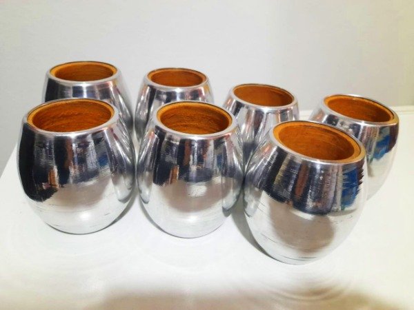MATE DE MADERA FORRADO EN ALUMINIO, FORMA CILÍNDRICA, PRÁCTICO, LIVIANO, TAMAÑO IDEAL.