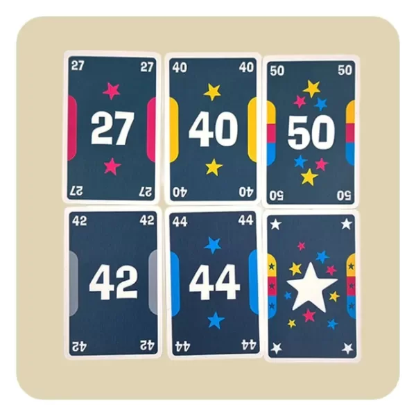 Se reparten 5 cartas a cada jugador y deberás ir bajando cartas. Hay 2 reglas muy simples, deberás bajar una carta más alta que la que se encuentre en el centro, la carta puede ser menor a la misma, solo si comparte el mismo color de estrella...