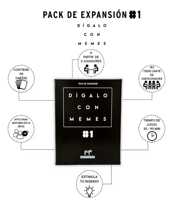 El pack de expansión #1 de Dígalo Con Memes incluye 90 cartas de situación y 25 cartas de imagen.