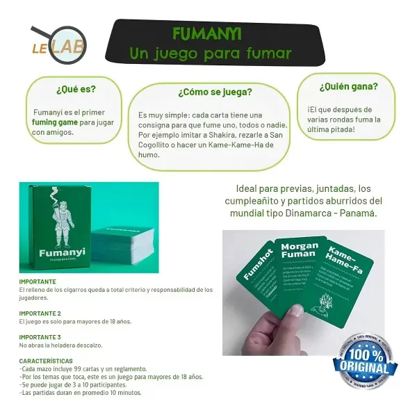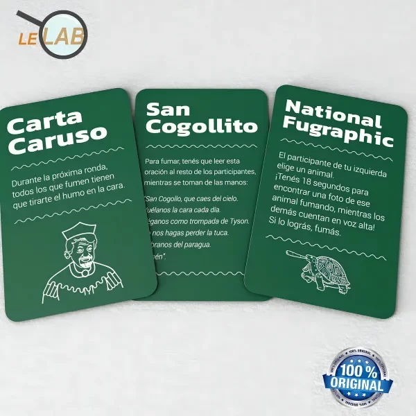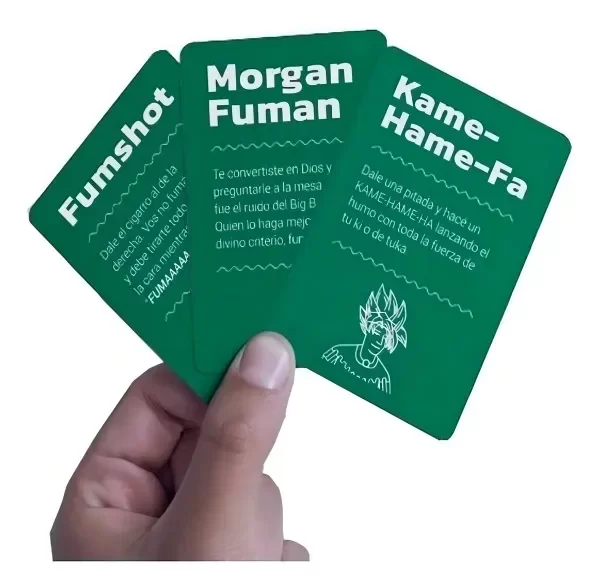 Es muy simple: cada carta tiene una consigna para que fume uno, todos o nadie. Por ejemplo imitar a Shakira, rezarle a San Cogollito o hacer un Kame-Kame-Ha de humo. ¡Gana el que después de varias rondas fuma la última pitada!