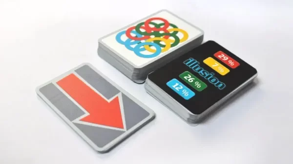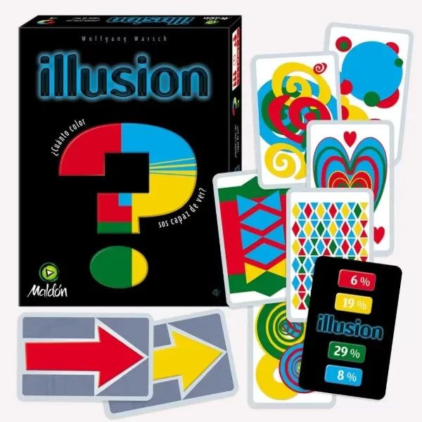 Illusion es un también creado por Wolfgan Warsch. Mas que un juego de mesa es una desafío visual. ¿Confiás en tus ojos? ¿Cuánto color sos capaz de ver? Las reglas son muy simples: sacás una carta y la tenés que ubicar dependiendo de la cantidad de color que creés que tiene. Pueden jugar grandes contra chicos y es ideal para jugar en familia.