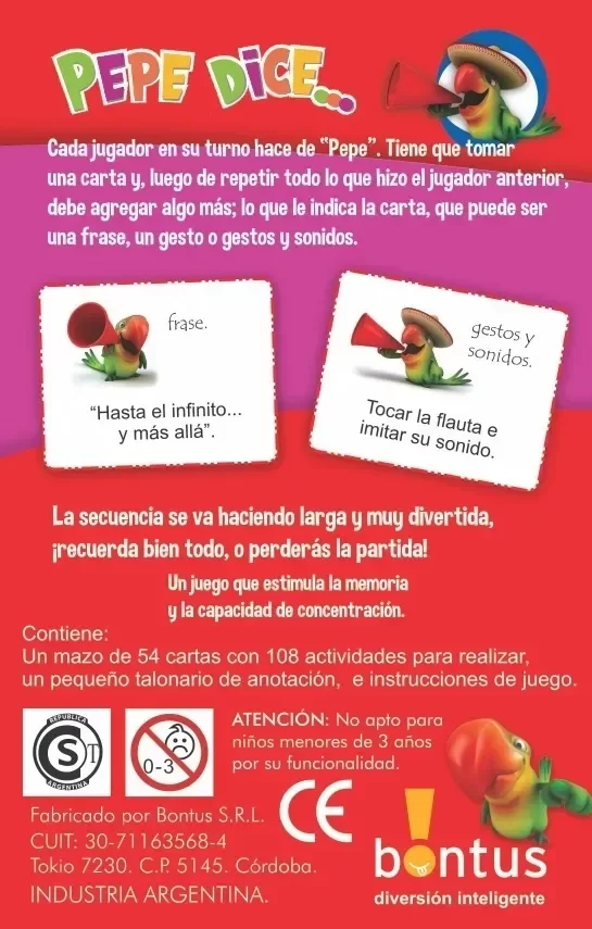 Contiene 54 cartas con 108 actividades, un talonario anotador e instrucciones.