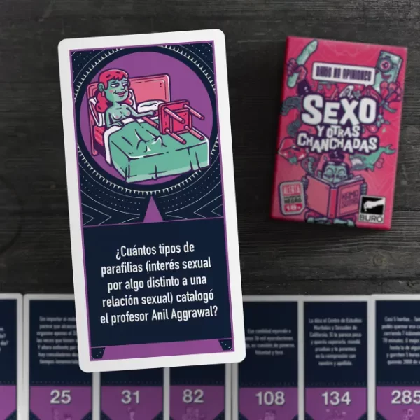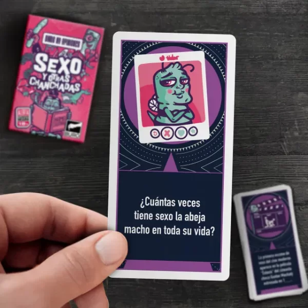 DATOS NO OPINIONES: Sexo y Otras Chanchadas Porque todos hablamos de sexo, pero… ¿qué tanto sabés de él? En esta edición de Datos No Opiniones, vas a explorar todo lo que siempre quisiste saber sobre el placer más antiguo del mundo (y mucho más). Datos locos, cifras escandalosas y curiosidades que te harán reír, pensar y hasta ponerte nervioso. Desde las cifras más sorprendentes hasta esas prácticas raras que ni te imaginabas, pero que seguro te van a intrigar. ¿Cómo se juega? Inicias con una carta al azar. Leés en voz alta y revelás la respuesta. Ese es tu punto de partida para la Fila de Datos. En tu turno, agarrás otra carta sin ver la respuesta, y tenés que ubicarla a la izquierda o derecha del número anterior. ¿La respuesta es mayor? ¡A la izquierda! ¿Es menor? ¡A la derecha! La das vuelta y… si acertaste, sigue el siguiente. Si la pifiaste, la tenés adentro (diría el Diego). Si errás dos veces, adiós, quedás eliminado (porque nadie tiene tiempo para los distraídos). ¡Conforme el juego avanza, la Fila de Datos se va armando y se pone cada vez más difícil! INCLUYE: 102 cartas con preguntas picantes sobre sexo (y otras chanchadas). La Fila de Datos que pondrá a prueba tu memoria y tus conocimientos. Un toque de irreverencia y un poco de risas incómodas. FICHA TÉCNICA: Jugadores: 2 a 10 Edad recomendada: 18+ (porque los datos pueden ser muy intensos). Duración: 15 a 20 minutos IMPORTANTE: Podés mezclar esta edición con las otras de Datos No Opiniones y jugar a puro Sexo, Drogas y Rock n' Roll. Porque, si no es con estilo, ¿para qué? Podés recibir la caja reeditada o la caja original, sujeto a disponibilidad. Advertencia: Este juego podría hacer que tus amigos dejen de hacer preguntas incómodas en las reuniones. O tal vez no.