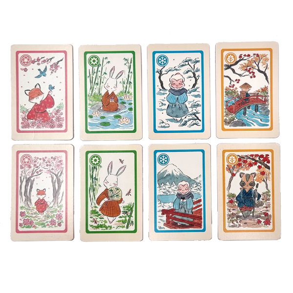Se reparten las cartas de las estaciones del año: Invierno, primavera, verano y otoño. En cada turno, un jugador tira el dado que marcará la estación en juego. Quien lo tiró se descartará de todas las cartas que tenga de esa estación. El resto de los jugadores también juegan y se descartarán de una sola carta de esa estación. El primero que se queda sin cartas en la mano, avanza un lugar en el contador. El primero que cruza la línea de la victoria, será el ganador.