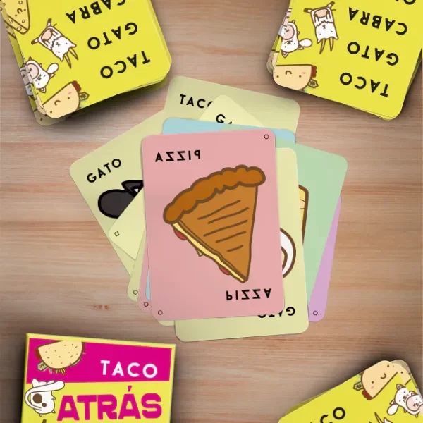 TACO ATRÁS es una vuelta de tuerca al clásico y rápido juego familiar. ¡No necesitas Taco Gato para jugar Taco Atrás, pero pueden combinarse para multiplicar la diversión!