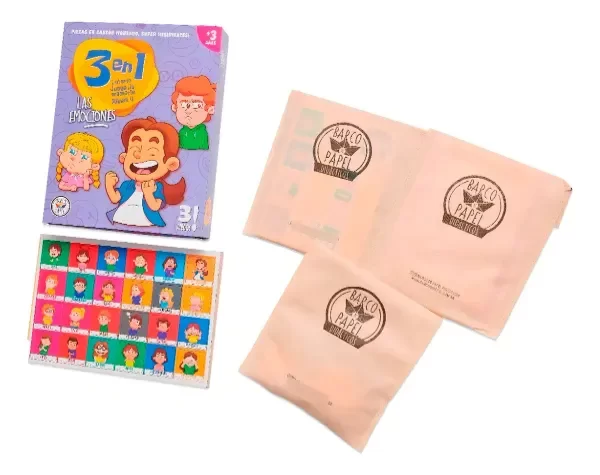 Descubre el emocionante 'Juego De Mesa 3 En 1 Las Emociones' de la marca Barco de Papel, una edición limitada que ofrece tres divertidos juegos en uno: Lotería, Test de Memoria y Alinea 4. Diseñado para ser disfrutado por un grupo de 2 a 4 jugadores, este juego es perfecto para compartir momentos inolvidables en familia o con amigos. Con una edad mínima recomendada de 3 años, es ideal para introducir a los más pequeños en el aprendizaje a través del juego. Cada componente, que incluye 4 tableros de Lotería, 24 fichas de Lotería, un tablero de Alinea 4, 48 fichas de Alinea 4 y 20 fichas de memoria, está fabricado en cartón montado laminado, garantizando durabilidad y resistencia. Además, cada juego viene con su propia bolsa ecológica para un almacenamiento práctico y responsable. ¡Aprender nunca fue tan divertido!