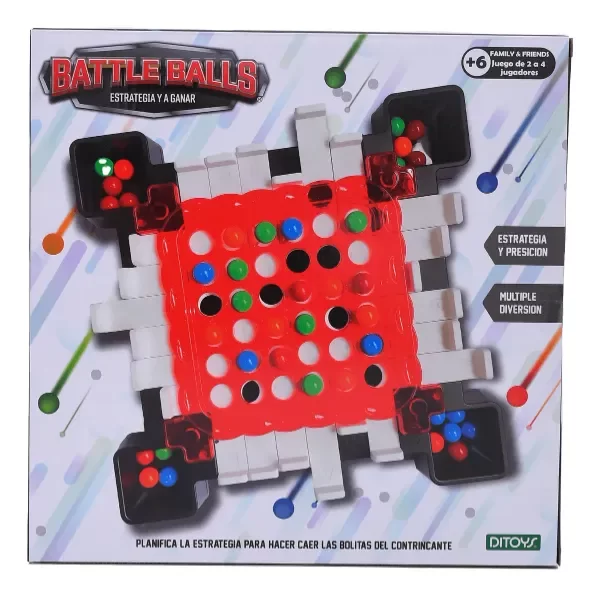 Battle Balls es ideal para entre 2 y 4 jugadores, lo que lo convierte en una opción excelente para reuniones familiares o tardes de juegos con amigos. Recomendado para niños de 6 a 9 años, su mecánica de juego sencilla pero adictiva asegura que tanto los más pequeños como los adultos puedan disfrutarlo. Cada partida se convierte en una nueva aventura, fomentando la interacción social y la diversión en grupo.