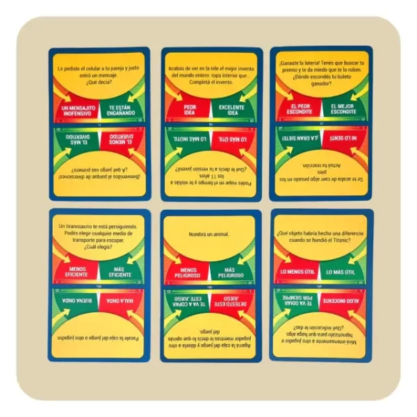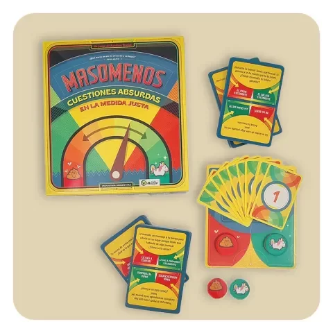 MASOMENOS un juego cooperativo de socialización de lo más entretenido, donde deberán ubicar CUESTIONES ABSURDAS en el orden correcto.