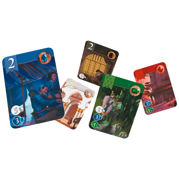 A medida que comprás cartas, armás tu motor de juego y atraés la atención de los nobles, que te regalan puntos extra si cumplís con sus requisitos.