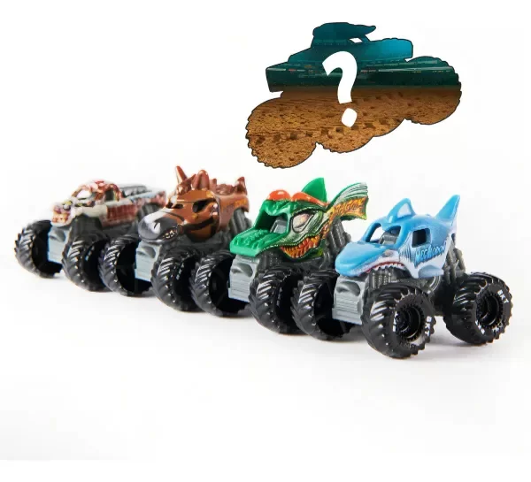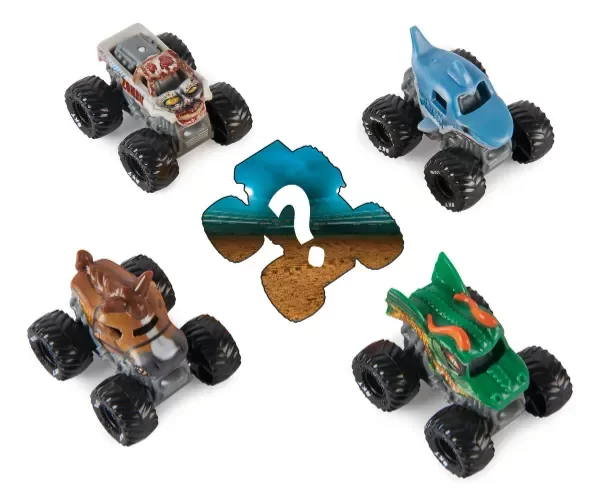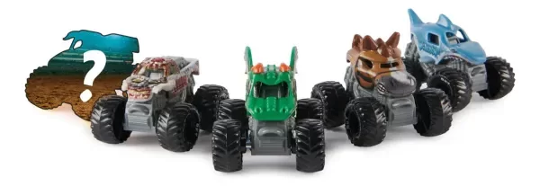 Monster Jam- Pack de 5 viene con Horse Power, Zombie, Dragon, Megalodon y un mini camión misterioso. ¡Golpeá, golpea, choca y corre con tus propios camiones monstruos de Monster Jam Mini! Los mini camiones Monster Jam ponen la acción en la palma de tu mano. Cada camión está repleto de impresionantes detalles y gráficos, al igual que su versión a gran escala.