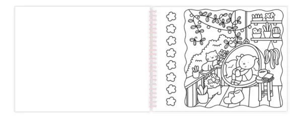 Contiene 96 paginas que celebran los pequeños placeres de la vida. En formato anillado, para abrir cómodamente las páginas al colorear.